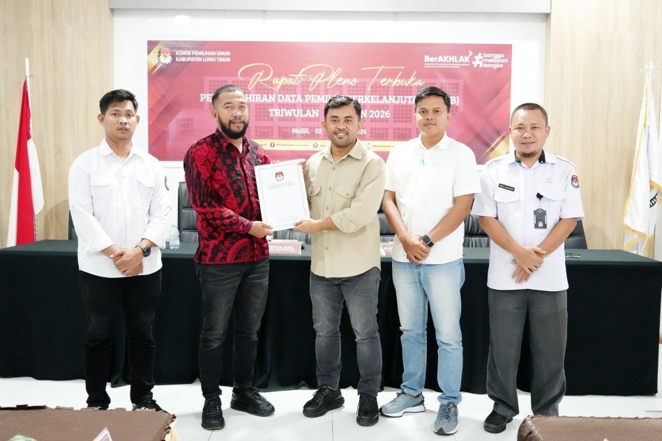 Dalam rapat pleno tersebut, KPU Luwu Timur menetapkan jumlah pemilih pada Rekapitulasi PDPB Triwulan I Tahun 2026 sebanyak 233.686 pemilih, yang terdiri dari 120.261 pemilih laki-laki dan 113.425 pemilih perempuan.