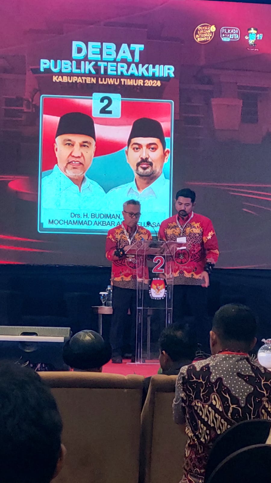 Inspirasi.update.com, Luwu Timur – Dalam penutup debat publik terakhir Pilkada Luwu Timur, calon Bupati Drs. H. Budiman Hakim Andi Baso, M.Pd., menyampaikan apresiasi yang mendalam kepada masyarakat dan tim pemenangan Budiman-Akbar yang telah mendukung mereka. Menurut Budiman, Pilkada ini bukan hanya soal kemenangan pasangan calon, tetapi juga tentang menjaga kebaikan bagi Luwu Timur bersama-sama.