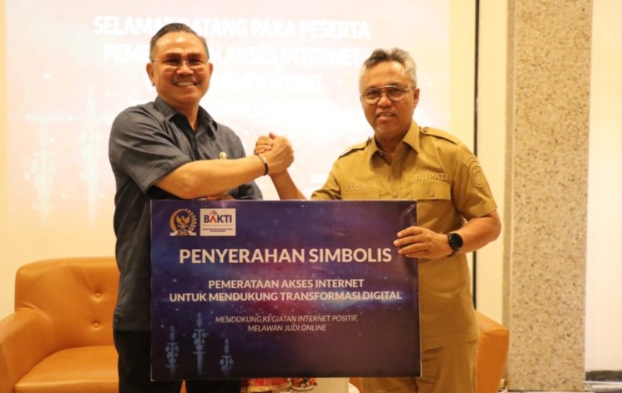 Inspirasi.update.com, Luwu Timur – Bupati Luwu Timur, H. Budiman menerima bantuan Akses Internet dari BAKTI Komdigi yang diserahkan oleh Anggota DPR RI Komisi I, Irjen Pol (Purn.), Drs. Frederik Kalalembang.