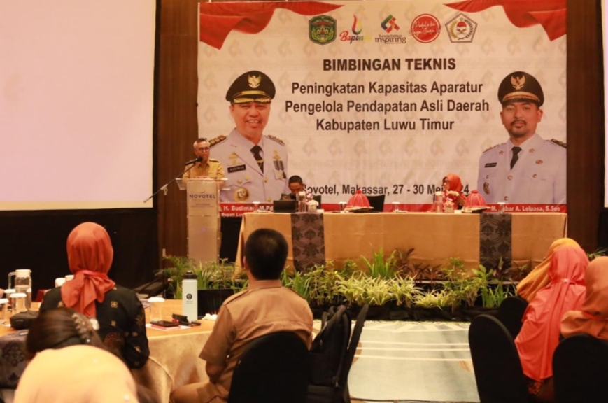 Inspirasi.update.com, Luwu Timur – Bupati Luwu Timur, H. Budiman membuka Bimbingan Teknis (Bimtek) Peningkatan Kapasitas Aparat Pengelola Pendapatan Asli Daerah (PAD) Tahun 2024, yang dilaksanakan di Novotel Makassar, Senin (27/05/2024).