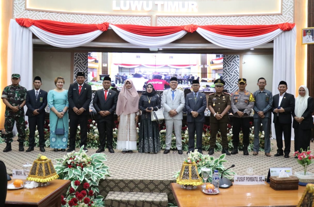 Sidang Paripurna dihadiri unsur Forkopimda Lutim, Pimpinan dan segenap Anggota DPRD Kabupaten Luwu Timur, Kepala OPD, Camat dan Kepala Desa Lingkup Kabupaten Luwu Timur serta para undangan