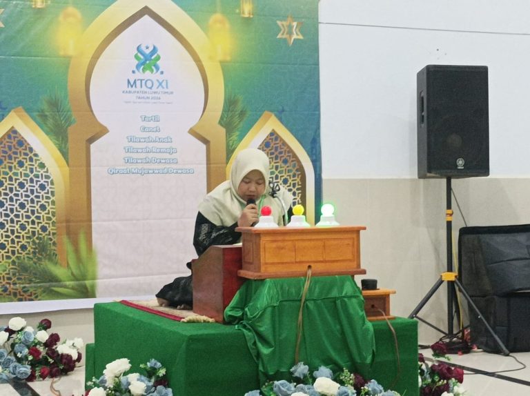Luwu Timur, InspirasiUpdateNews.Com– Cabang Seni Baca Al-Qur’an golongan Qira’at Mujawwad Dewasa Putri pada Majelis 1 dalam rangka Musabaqah Tilawatil Qur’an (MTQ) XI Tingkat Kabupaten Luwu Timur Tahun 2026 berlangsung khidmat dan penuh kekhusyukan.