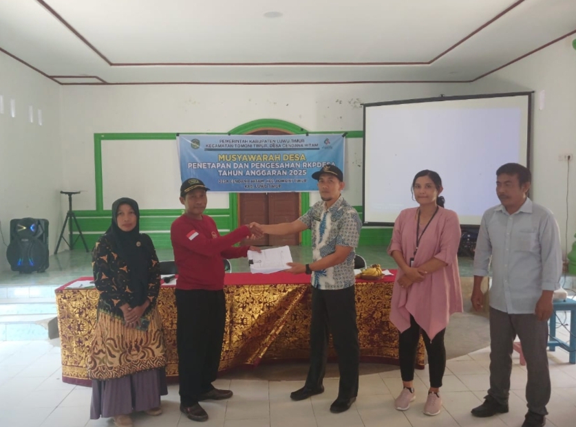 Inspirasi.update.com, Luwu Timur – Desa Cendana Hitam, Kecamatan Tomoni Timur, menggelar Musyawarah Rencana Pembangunan Desa (Musrenbang) untuk penetapan Rencana Kerja Pemerintah Desa (RKPDes) tahun 2025 pada Jumat (18/10/2024). Acara berlangsung di aula kantor desa dan dihadiri sejumlah tokoh penting, termasuk Camat Tomoni Timur Yulius, Pejabat Kepala Desa Cendana Hitam Marzuki, serta jajaran terkait seperti Babinkamtibmas, Ketua BPD, dan para tokoh masyarakat.