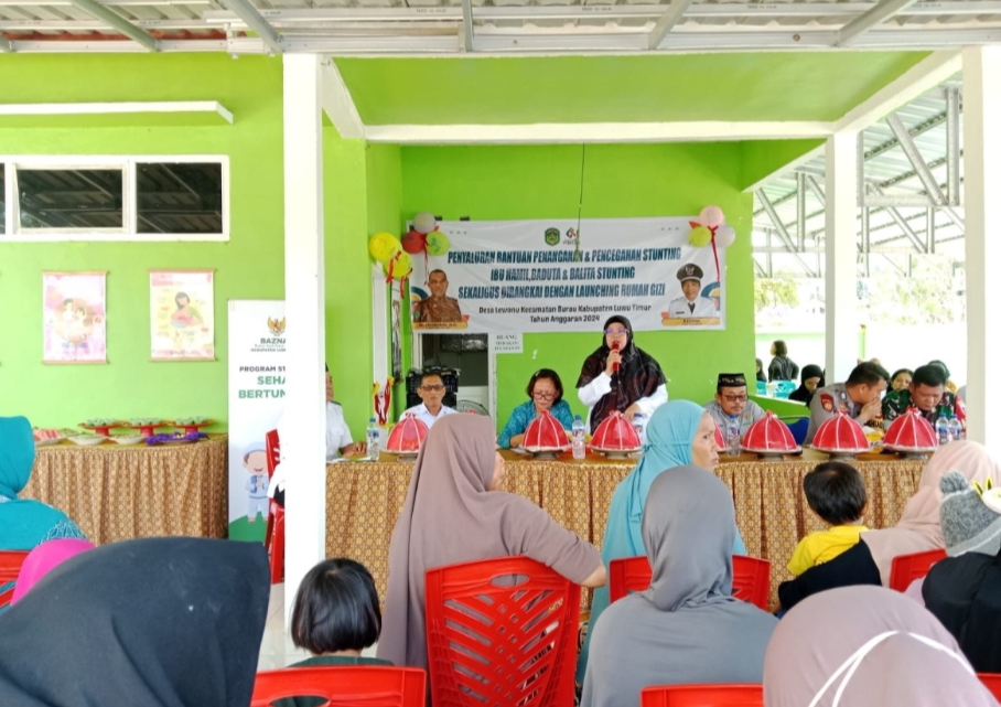 Inspirasi.update.com, Luwu Timur – Pemerintah Desa Lewonu, Kecamatan Burau bekerja sama dengan Badan Amil Zakat Nasional (BAZNAS) Kabupaten Lutim sebagai Mitra Pemerintah, melakukan Penyaluran Bantuan Penanganan dan Pencegahan Stunting Ibu Hamil, Baduta, dan Balita Stunting berlangsung di Posyandu Medica Desa Lewonu, Kecamatan Burau, Kabupaten Luwu Timur, Rabu (20/11/2024).