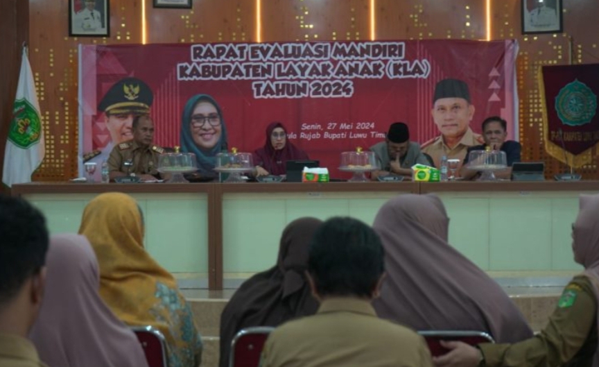 Inspirasi.update.com, Luwu Timur – Pemerintah Kabupaten Luwu Timur (Pemkab Lutim) melalui Dinas Sosial, Pemberdayaan Perempuan dan Perlindungan Anak (Dinsos P3A) menggelar rapat evaluasi mandiri Kabupaten Layak Anak (KLA) tahun 2024 yang dilaksanakan di Aula Rujab Bupati, Senin (27/05/2024).