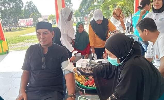 LUWU TIMUR – Camat Kalaena, Muhammad Yusri bersama Sekcam dan Ketua TP-PKK Kecamatan Kalaena mengikuti kegiatan Gerakan Pengukuran Tekanan Darah (Tensi) serentak dalam rangka Hari Kesehatan Nasional (HKN) ke59, diselenggarakan UPTD Puskesmas Kalaena, Jum’at (3/11/2023)