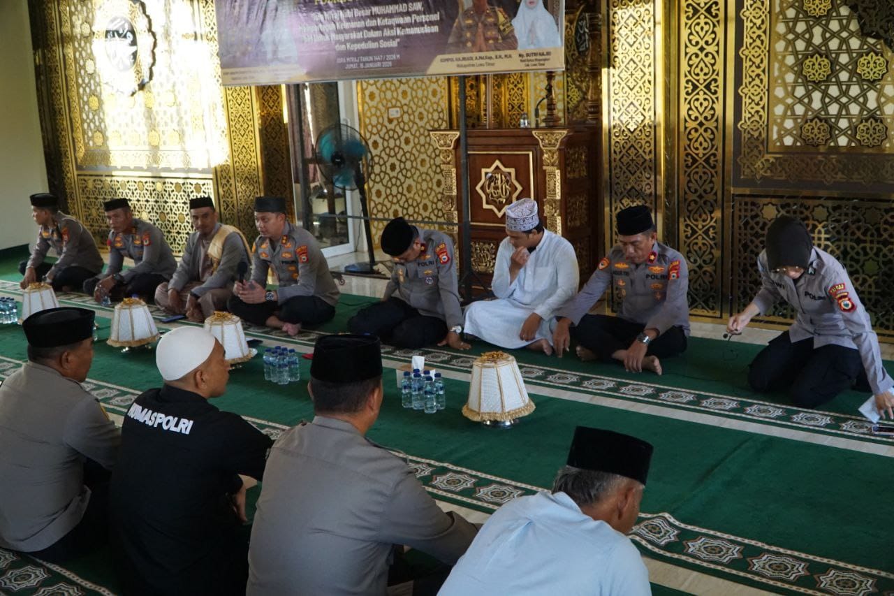 Luwu Timur, InspirasiUpdateNews.Com- Polres Luwu Timur menggelar peringatan Isra Mi’raj Nabi Muhammad SAW 27 Rajab 1447 Hijriah yang berlangsung khidmat di Masjid Al Ukhuwah, Rumah Ibadah Bhineka Tunggal Ika Polres Luwu Timur, Jumat (16/1/2026).