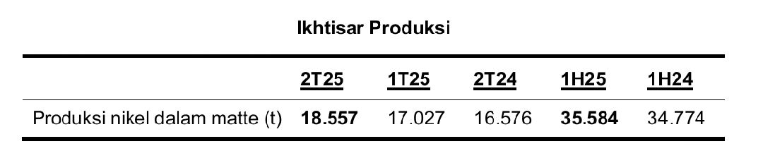 Ke depannya, kami tetap optimis terhadap prospek produksi dan yakin akan kemampuan kami untuk mempertahankan stabilitas operasional sepanjang sisa tahun ini. Perseroan menargetkan total produksi sekitar 71.234 metrik ton (t) nikel dalam matte untuk tahun 2025, meningkat dari target tahun lalu.